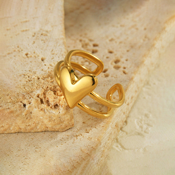 Gold Plated Anti Tarnish Stainless Steel Heart Themed Adjustable Finger Ring